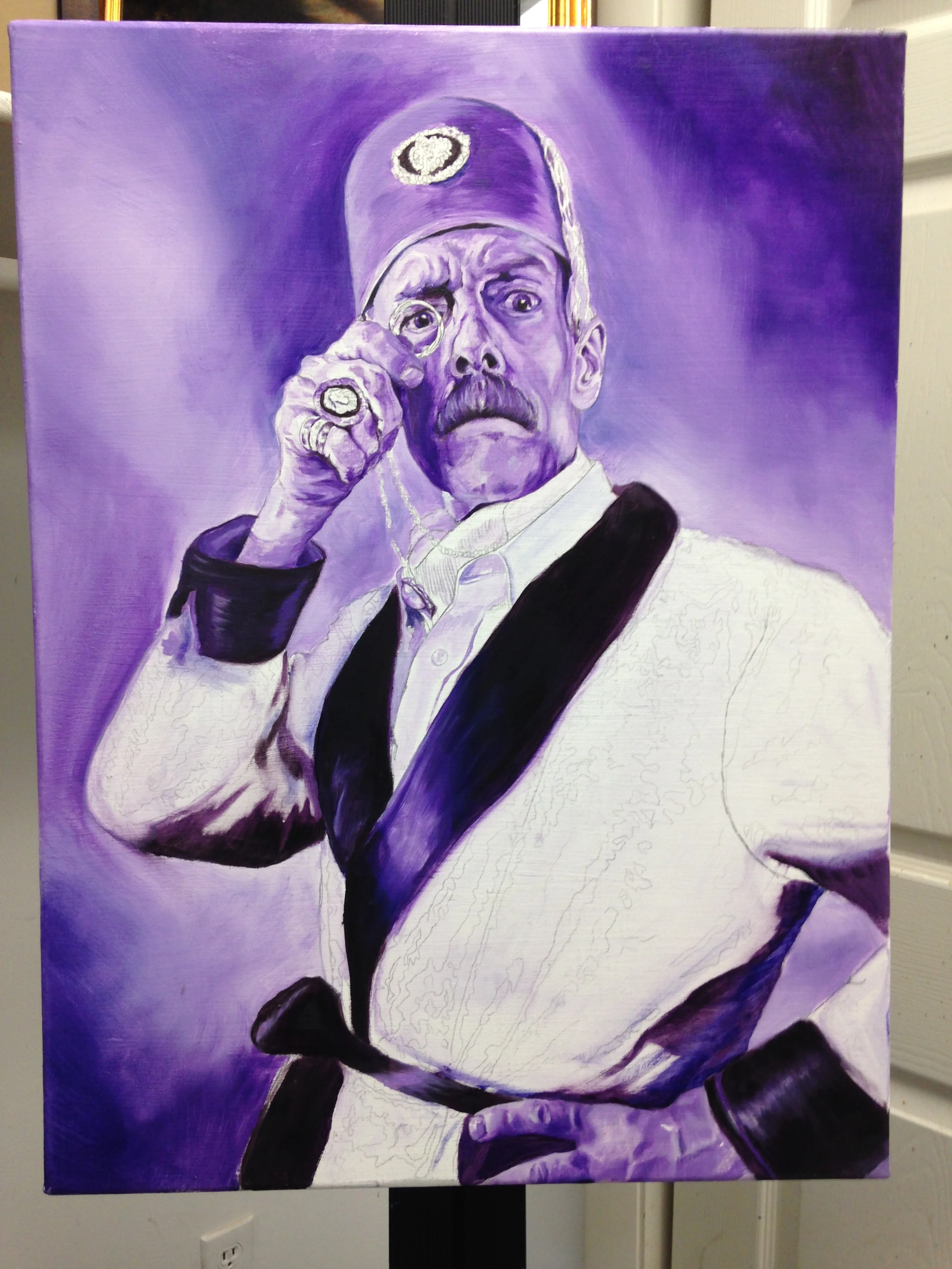 •  I then paint a detailed under painting in violet values. In my mind Violet has a mystical yet royal feel to it. This allows me to manipulate it to my whim in the next stage.